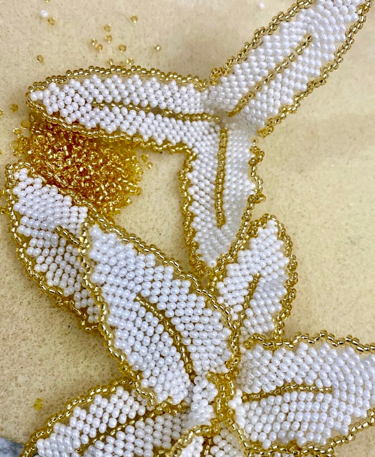 Cada joya shaïma se teje a mano, pieza a pieza, combinando rocalla japonesa de precisión con metales nobles y detalles textiles de alta costura. Creemos en el lujo que se construye despacio, con calma, y en la belleza de las piezas hechas con intención.